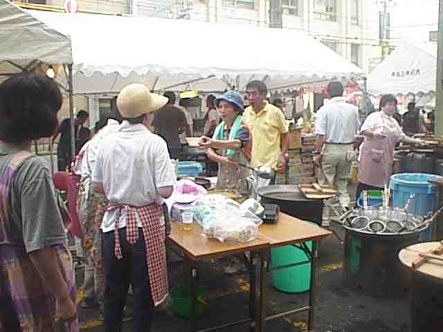 当市の標準盆踊りである「平家踊り」の総踊りやいろいろなパレード、カラオケ大会などいろいろな催しがあります。浅葱は昨年は市職員として平家踊りに参加しましたが、本年は浅葱と同じ職種の先輩方が参加されているボランティア団体のお手伝いに行きました。うどん&かき氷のバザーです。