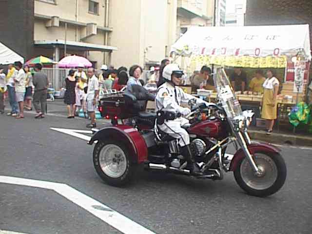 Harley Davidson の行列の一部です。浅葱は中学生の頃プラモデルまで作るほどこのバイクが大好きで、大人になったら二輪の免許を取ろうと思っていたのですが、原付でこけてからあえなく4輪に転向しました。(29KB)