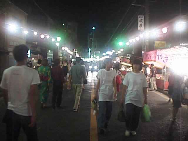 午後9時30分をもって全バザーは終了しました。テントを片づけ、浅葱たちお手伝いは団体の皆さんより一足先に失礼することになりました。H子と中通りをJR下関駅に向かって西に歩いていきます。このあたりはまだまだ露店業者の出店が並んでいました。(20KB)