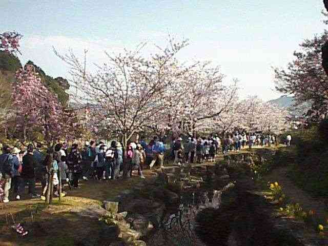 ここの参加受付でゼッケンやスタンプ帳などをもらって吉田小学校に移動します。桜も満開です。(36KB)