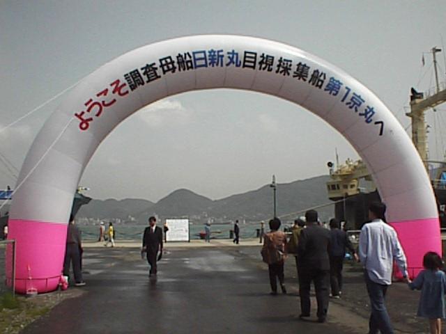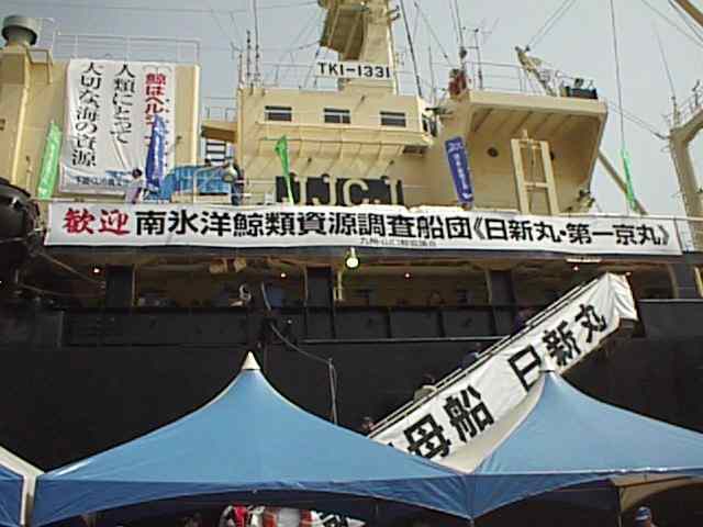 いやいや料理のことばかり言っていてはいけません。今日は日本がただ1隻しか所有していない調査捕鯨母船「日新丸」がキャッチャーボート「第1京丸」とともに、調査捕鯨を終えて下関に寄港するというので見に行ってきました。日新丸には世界でただ一つしかない鯨の体重計があるということです。