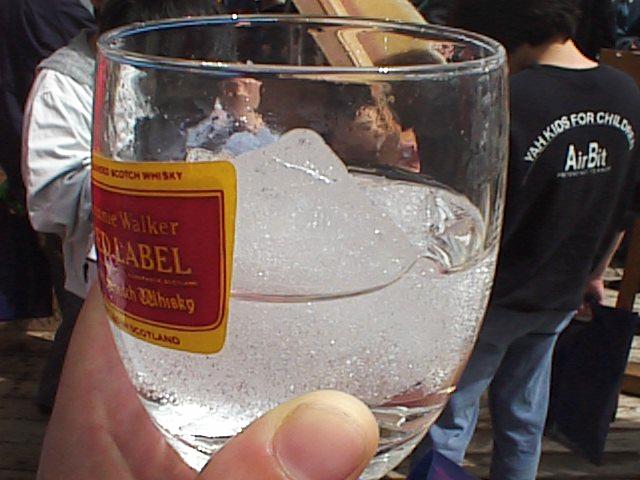 氷にはとても小さな気泡が無尽にちりばめられていて、遠目には白く不透明です。グラスに耳を近づけてみましたが、これがはじけるときの音というのは周囲が騒がしくてよく聞き取れませんでした。味はなんとなくしょっぱいような気がしました。(50KB)