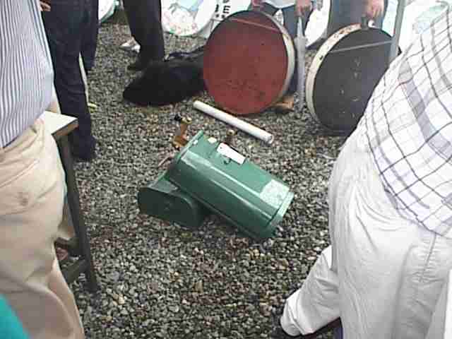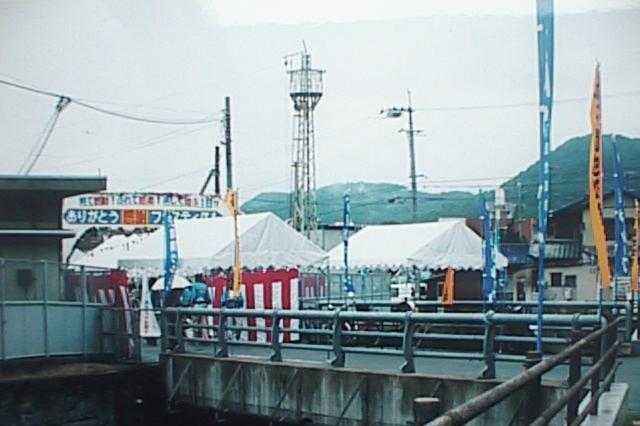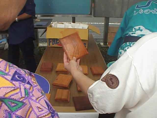 ここは地元の野菜や、飲食物を売っていました。なんでも工場の開設95周年記念ということで、ふつう100円の缶飲料やアイスクリーム、それにサザエのつぼ焼き、焼きそばなどが95円です。(22KB)