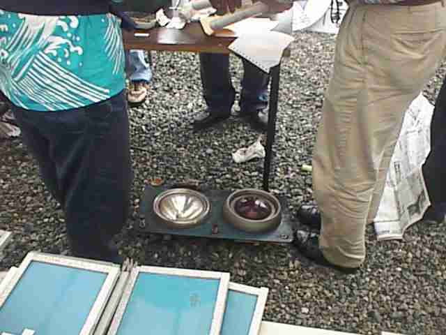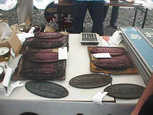 これは鉄道グッズとは少し違うんです。工場の業務では木工技術も必要とされるようで、普段仕事に使われる道具と技術を生かして作った花台を売っていました。御値段は忘れてしまいました。¥95だったかな〜もっと高かったかな?(お断り:花台を手に取って吟味しているオバサン2人は赤の他人です)
