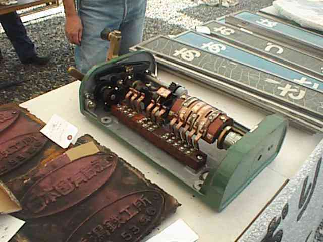 これはマスコンです。運転席にあって運転士さんがハンドルを握って走行速度を調節するアレです。車で言うとアクセルみたいなものですか〜? 取材メモにDCって書いているのは直流用ということかな? 自分で書いておきながらわかりません。だって取材から40日以上たってから記事起こししてるんだから忘れてるもん。¥10,000也。(26KB)