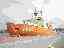 基準排水量11,600トン、全長134m、最大幅28m、乗員170名+観測隊員等60名収容です。各種通信用アンテナ5本に水上レーダー、気象観測用レーダーが付いています。氷海航行に最適な艦首角(水面と21度)により厚さ1.5mまでは強力な推進力で連続的に砕氷しながら前進可能(3ノット)。それより厚い場合はいったん艦を200〜300m後退させて最大馬力で前進し、体当たりして氷に乗り上げるようにして砕くそうです(チャージングまたはラミング砕氷)。すごいですね。(26KB)
