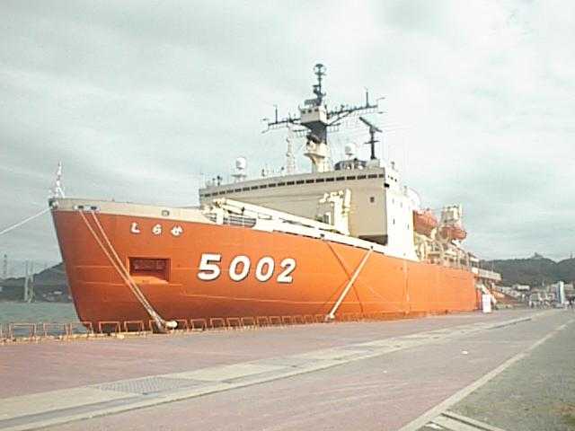 「しらせ」が10年ぶりで門司港に2度目の寄港をしました。新聞記事では事前・事後ともに「南極観測船」という記述でした。浅葱もこれまでそう信じてきましたが、見学に行ってみると白い制服姿の自衛官が大勢いる上に、あちこちに「砕氷艦」と書いてあるのです。この船は南極にとどまって観測活動を行なうというよりも、まず基地の越冬隊に物資を輸送し、砕氷、観測そしてヘリコプター母艦としての役割を持つ防衛庁海上自衛隊の特殊任務艦なのでした。知らなかったよぉ〜。文部省国立極地研究所の所属かと思っていました。