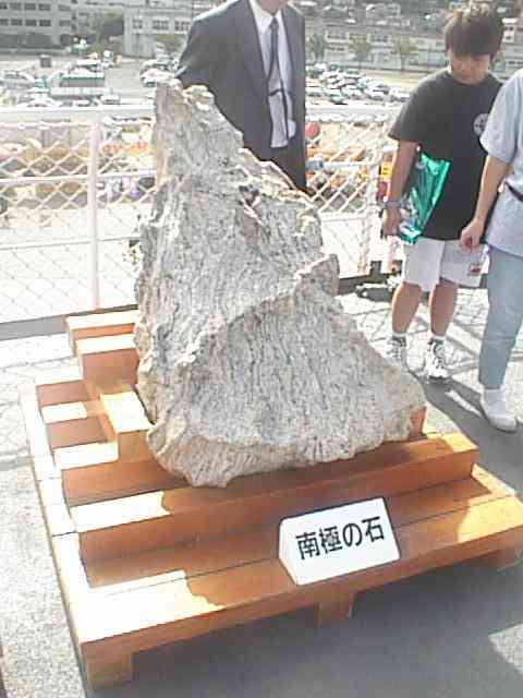 南極の石です。国際委員会でアンタークテカイトと呼称が定められている、6億年以前の先カンブリア紀の片麻岩や結晶片岩などの変成岩で、世界でもっとも古い岩石と言われています。これらは石英や長石の間に黒い角閃石、雲母、ガーネットなどが層状あるいはゴマ状に入っている変成岩の一種である大理石や、ホルンフェルズという泥岩のかたまり、あるいは火成岩である玄武岩などもあります。また氷河石は氷河時代に水の移動することによってこすれて出来た擦痕のある石で、たいへん珍しく貴重なものです。これ、展示パネルの説明書きを手帳に丸写しして来たのですけど、今、入力していて、なんかわかりにくいなと思いました。(31KB)