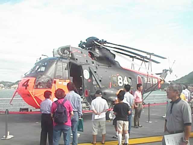 自衛隊の制服制帽を貸してくれるので、それを着てヘリの前で記念写真を撮る(サービス)のが人気でした。浅葱は興味ないけど、初老以降の男性が入れ替わり立ち代わり写っていました。(26KB)