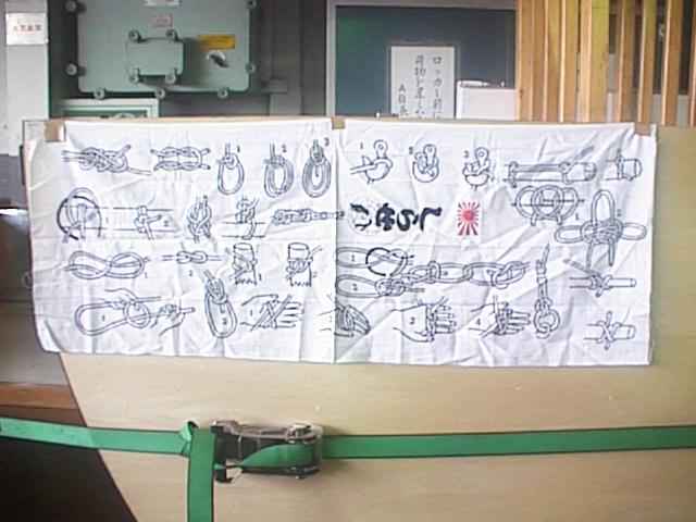 ちゃんと土産物売り場もありました。「しらせ」のネームが入っているというだけで、品物自体は普通にあるものばかりです。ちなみにTシャツは1,500円でした。その中で浅葱の目に留まったのはこの手ぬぐいです。ロープの結わえ方が描いてあるこれは、練習用だとか。キーホルダーやバッジなどよりはおもしろいし、400円とお手頃価格で良いなと思って財布を取り出しかけましたが、やっぱりやめました。(28KB)