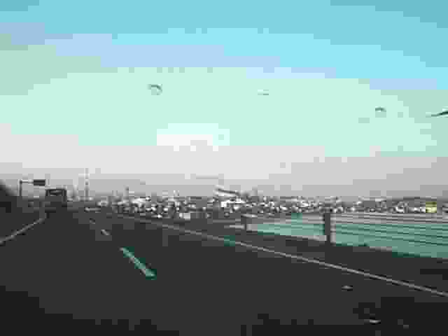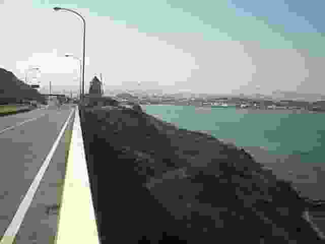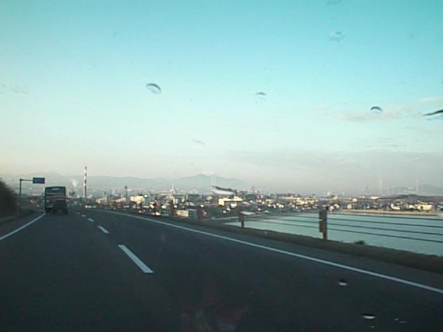 彦島有料道路を走る車中から見た彦島方面です。その向こうは九州です。