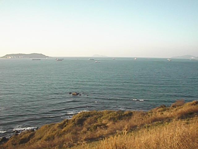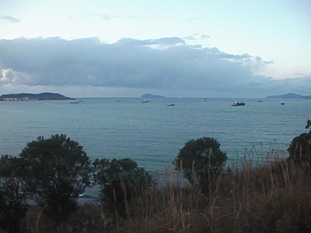 本当はパノラマにしようと思っていましたが、例によってめんどくさがりの館長はそのまま2枚を並べて貼り付けることで満足しています。右の写真に写っている彦島の右端の部分は、彦島と竹の子橋で陸続きになっている「竹の子島」です。ここの海岸は地学的に価値があって、浅葱も高校時代校外学習に行きました。いずれ写真を撮りに行きます。1998/02/11 (27KB)