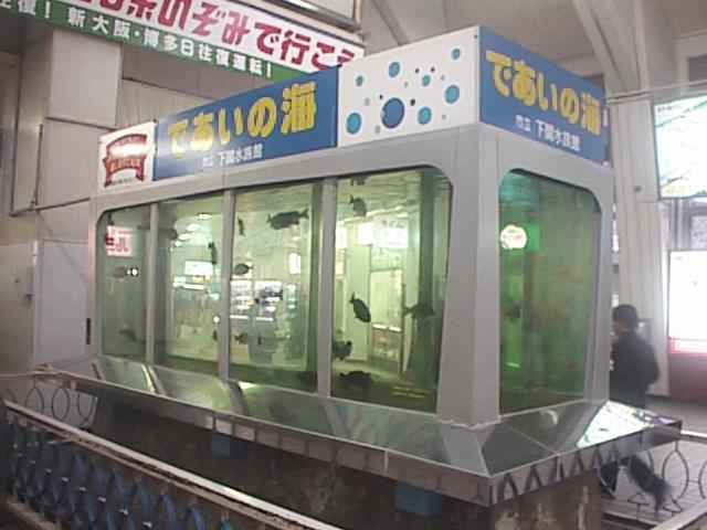 駅周辺が今ほど開発されていなかった頃は待ち合わせの場所というとここでした。小さくても市立水族館が管理している由緒正しい水槽です。(26KB)
