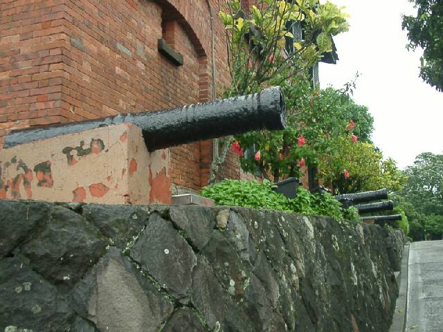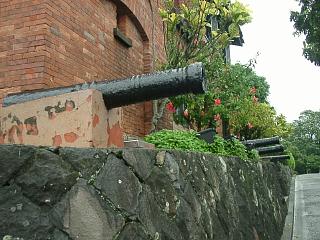 中華民国の国旗がはためいていますね、お城の前には大砲が何門もあって淡水川の河口を睨んでいます。